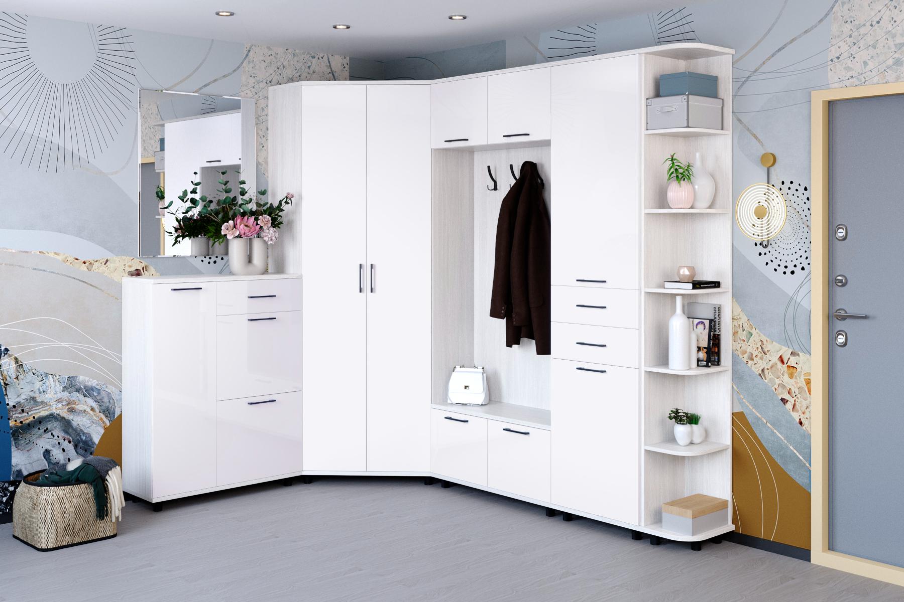 корпус Снежный Ясень| фасад Белый Бриллиант Глянцевый (ШК-5002-СЯ-БГ);