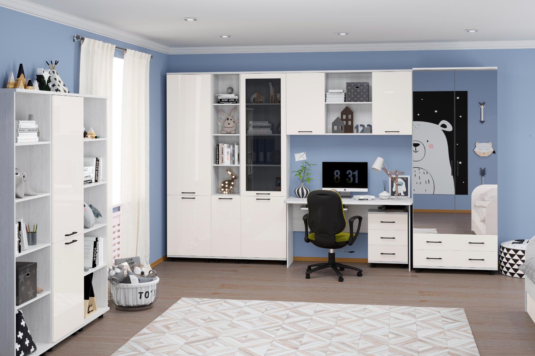 корпус Снежный Ясень| фасад Белый Бриллиант Глянцевый (ШК-5002-СЯ-БГ);