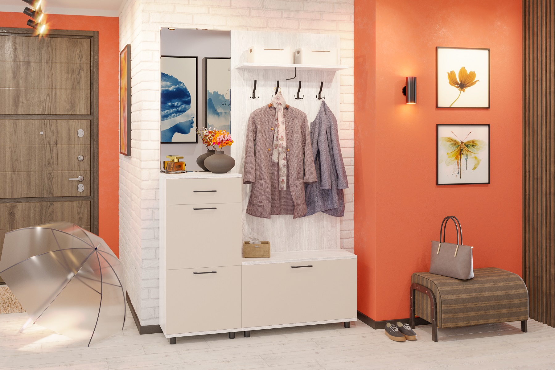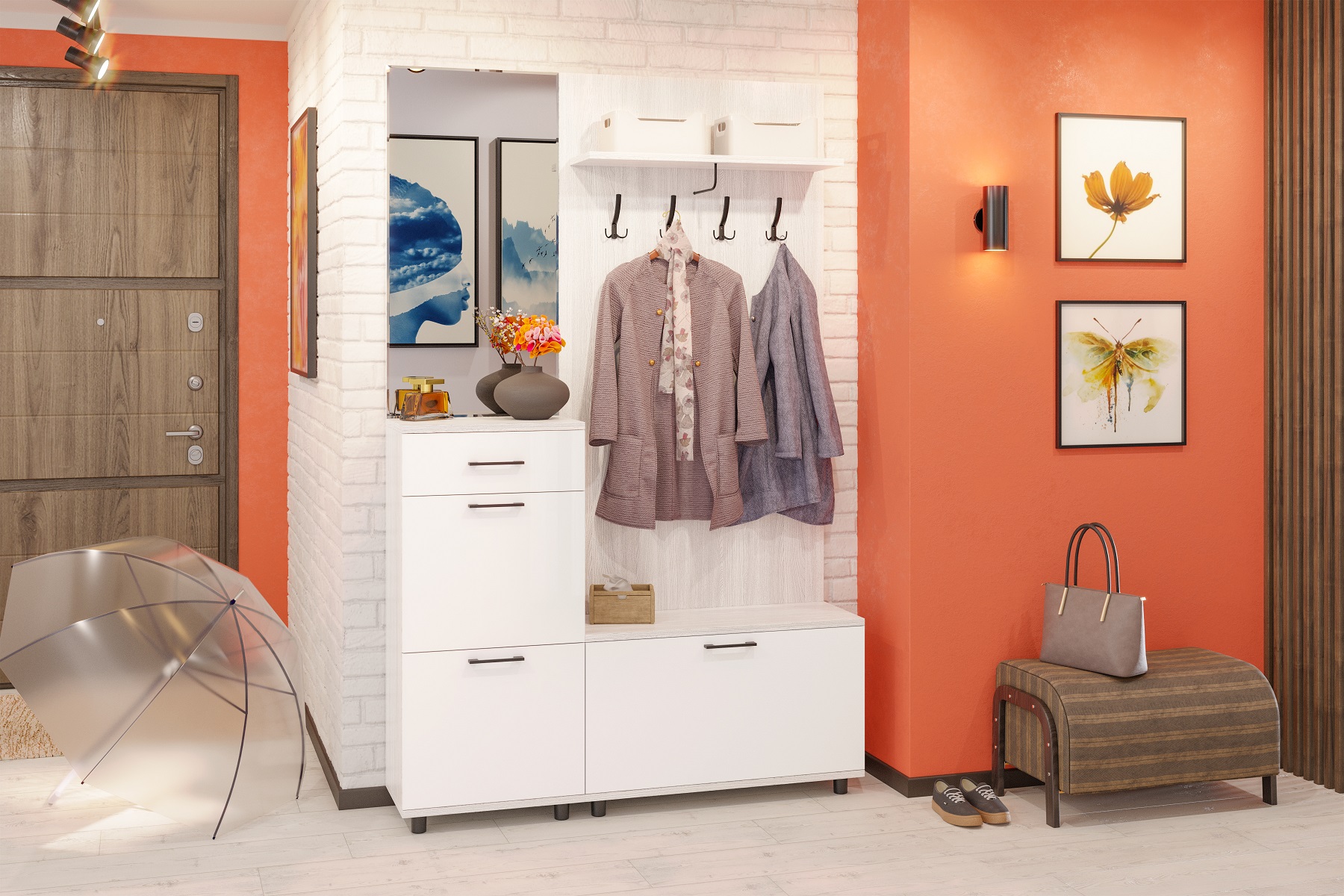 корпус Снежный Ясень| фасад Белый Бриллиант Глянцевый (ШК-5002-СЯ-БГ);