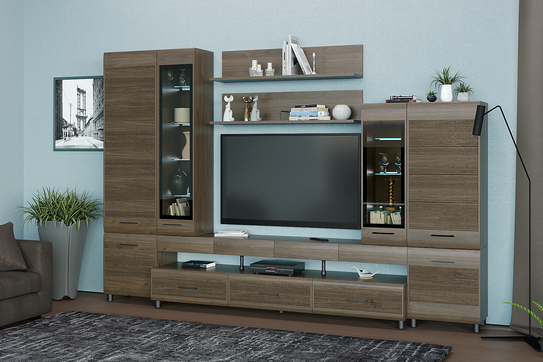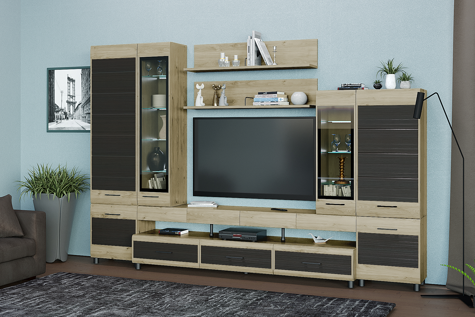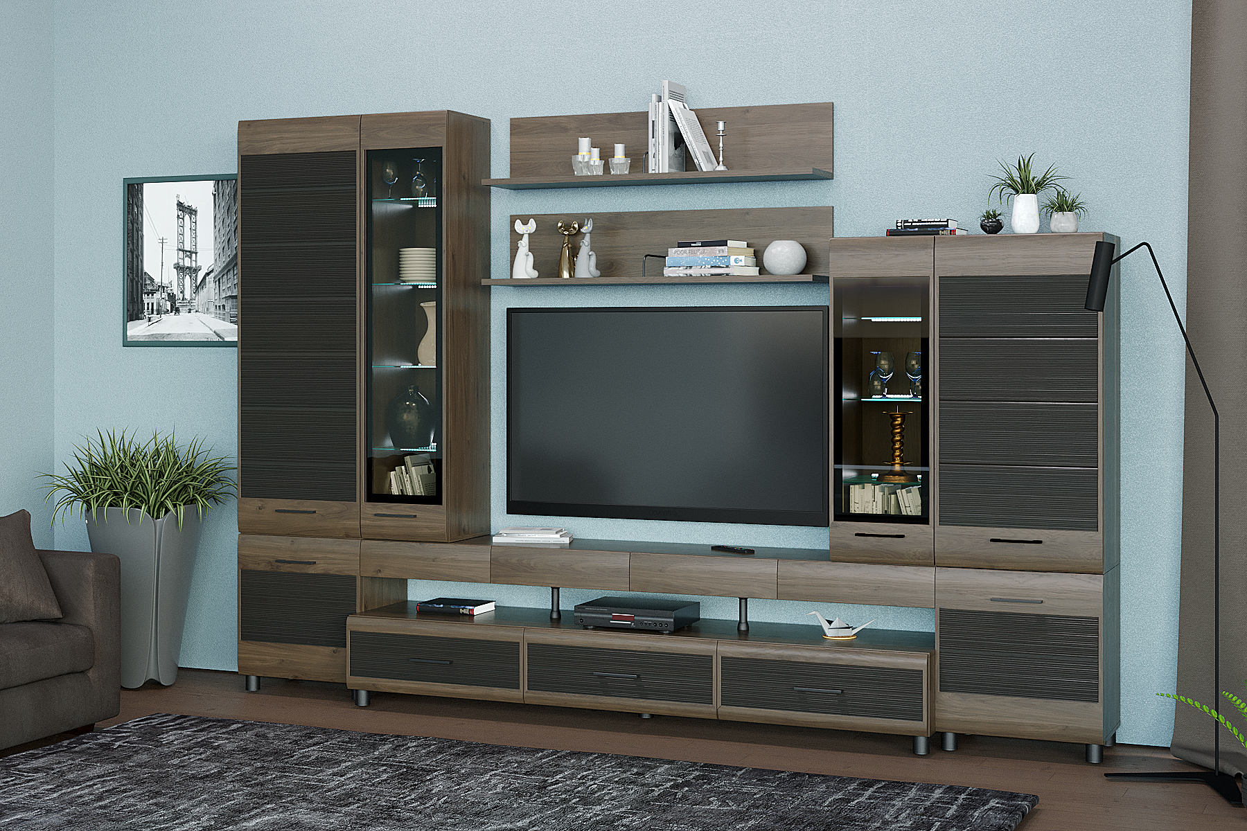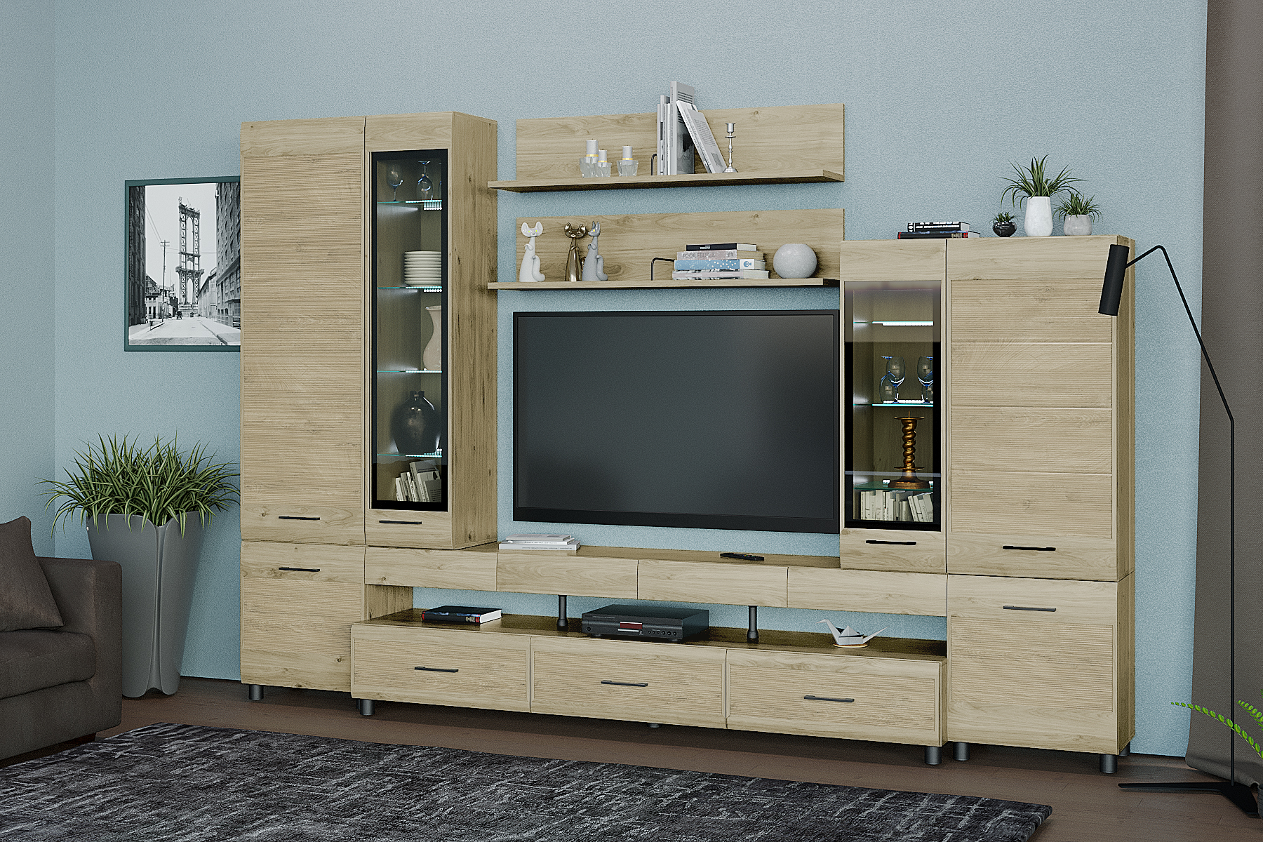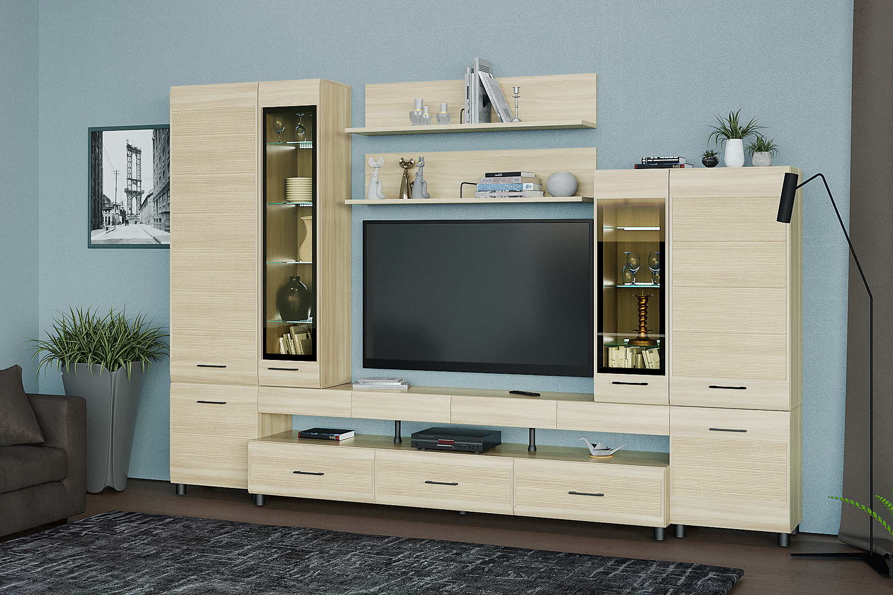 Габаритные размеры: ВхШхГ — 2172х3240х452 мм.