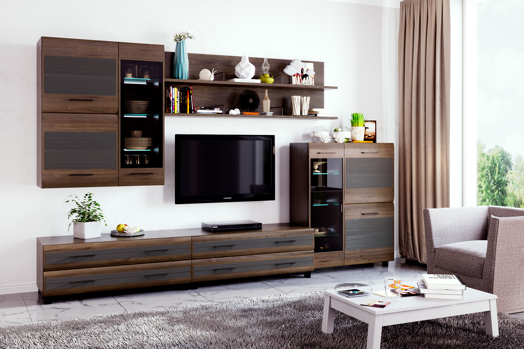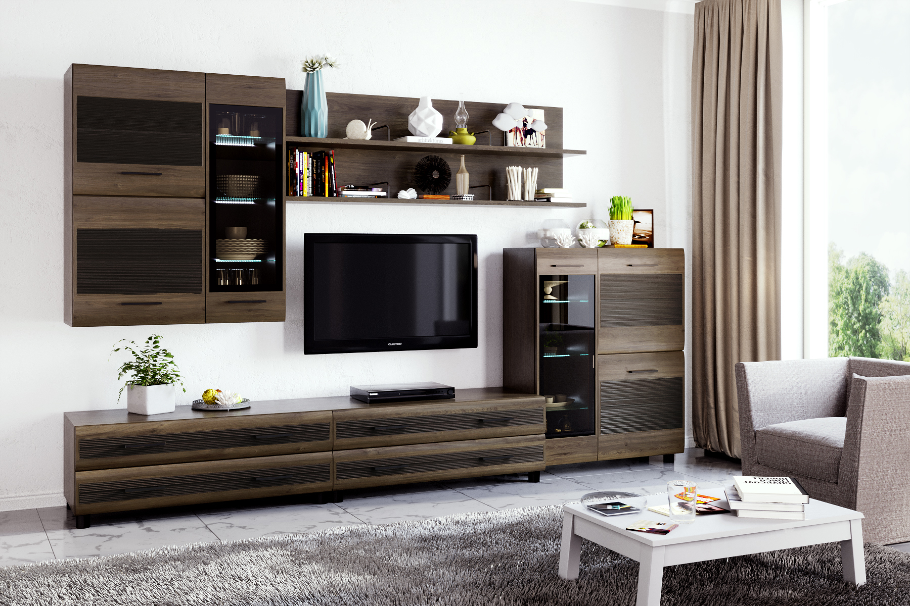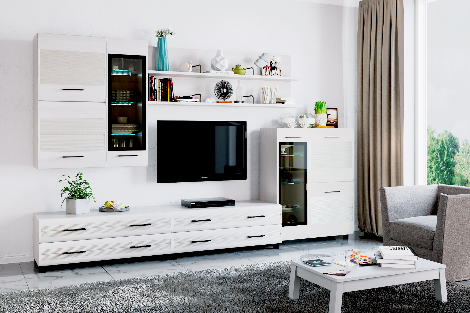Размер ниши под телевизор: ВхШ — 1150х1080 мм.