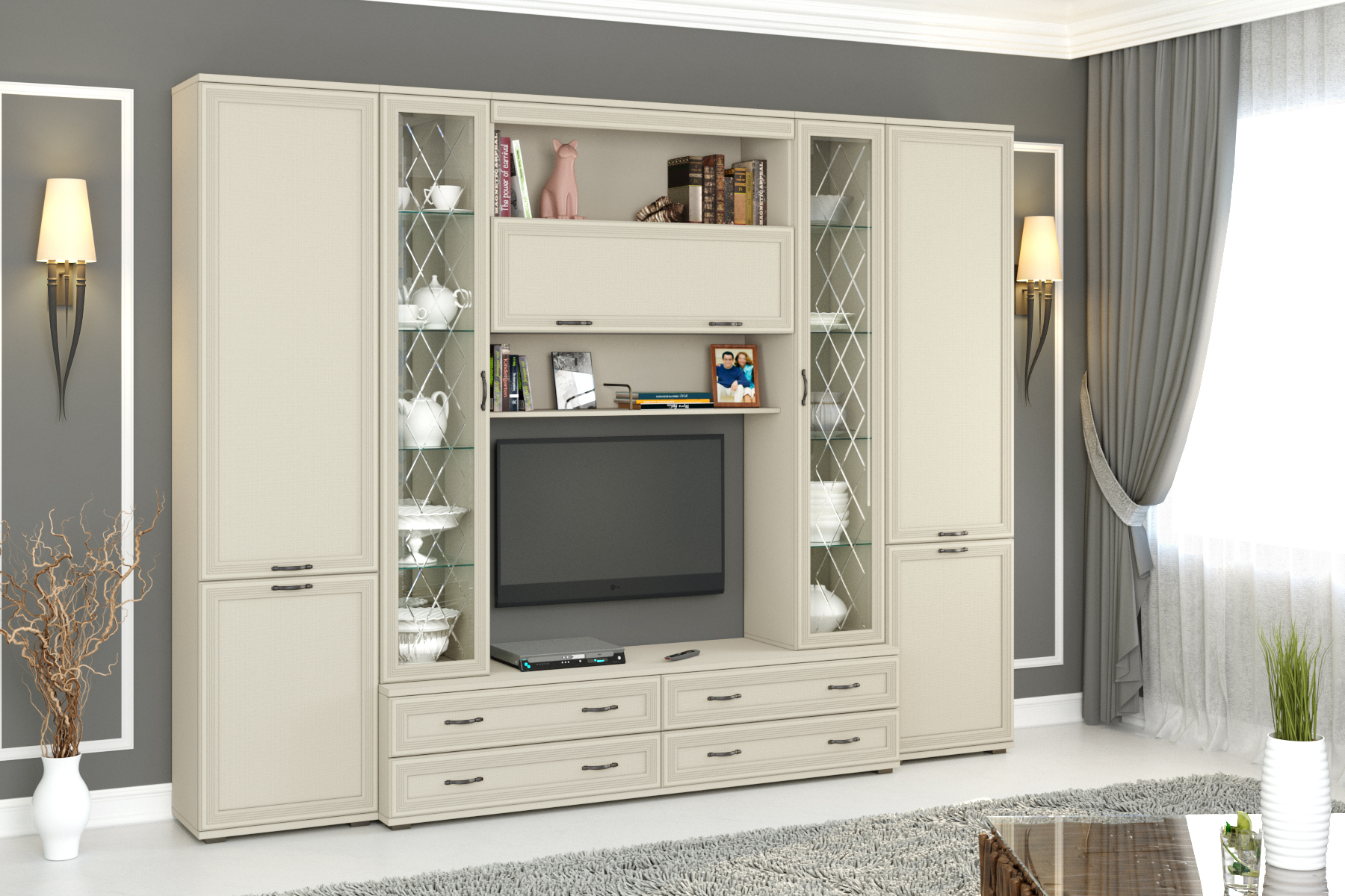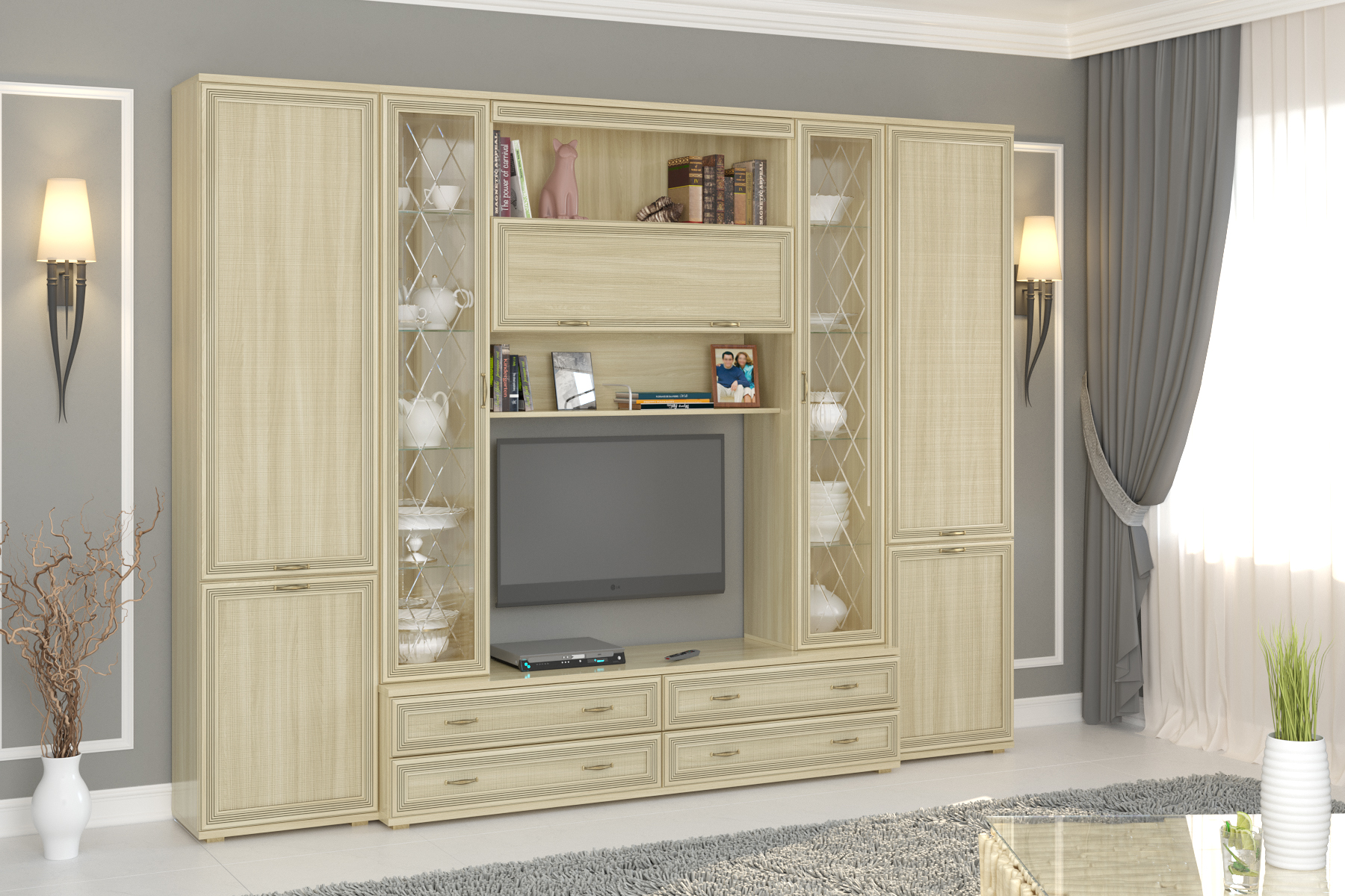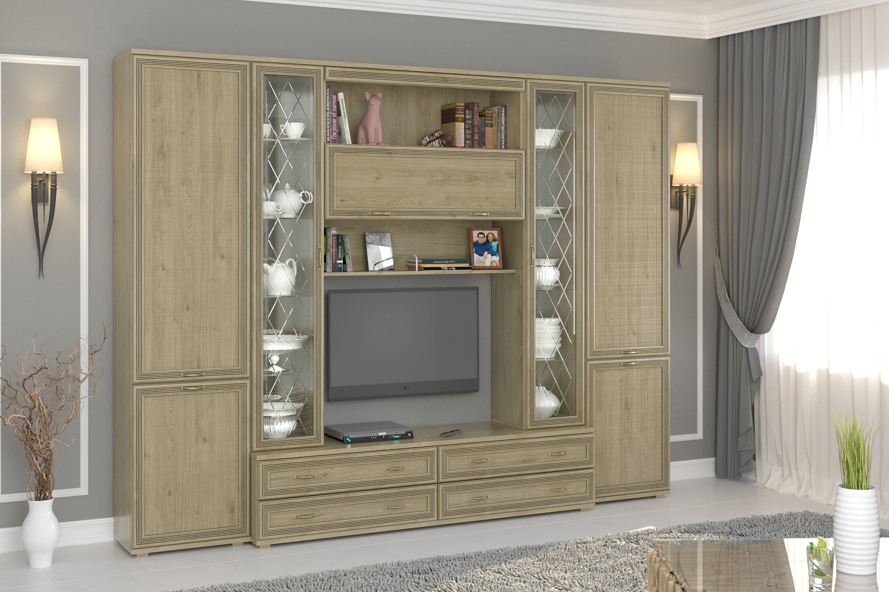 Размер ниши под телевизор: ВхШ — 794×1080 мм.