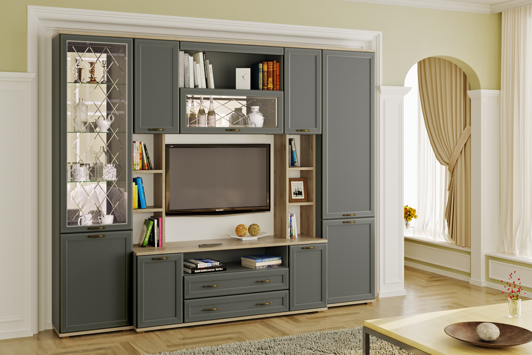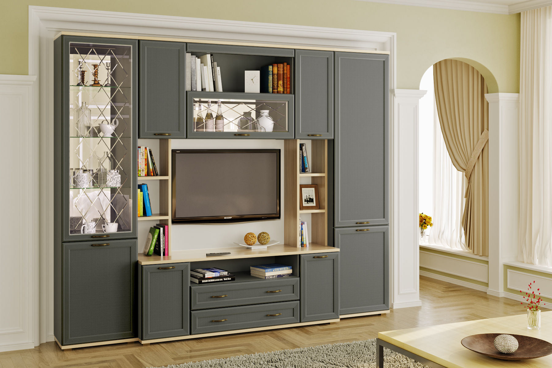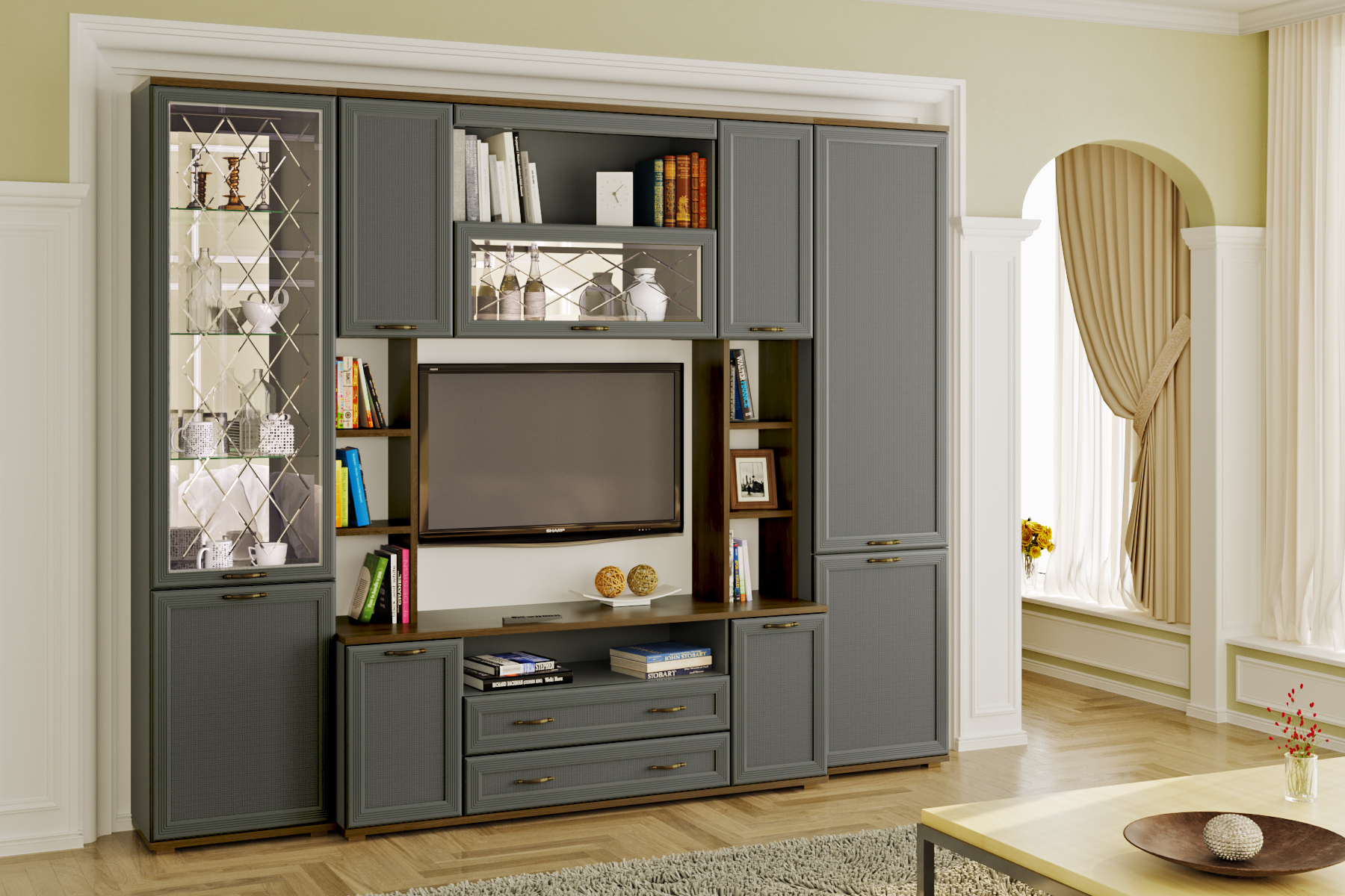 Цена включает в себя комплект зеркал (ЗР-1013 и ЗР-1025) за стеклянными фасадами