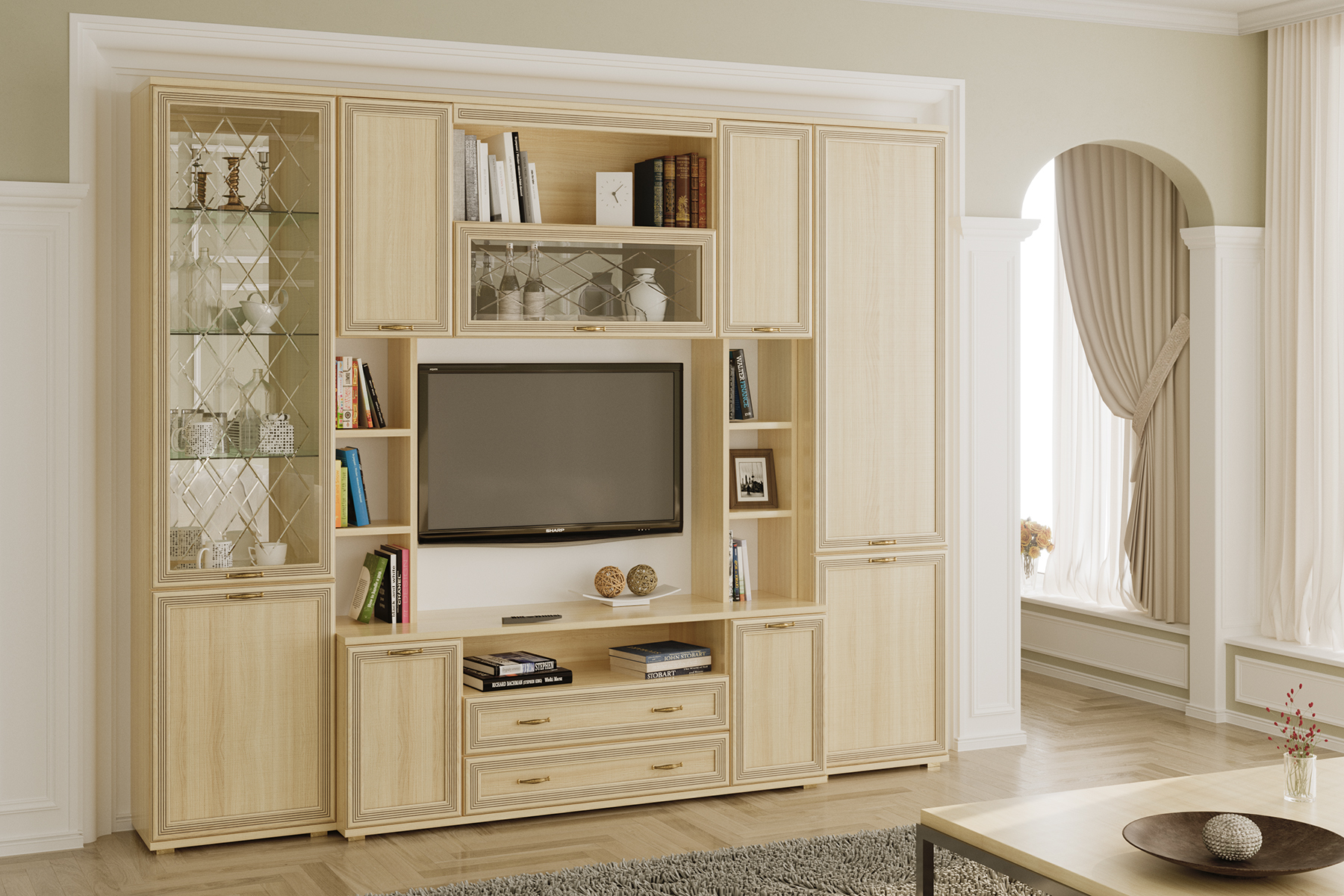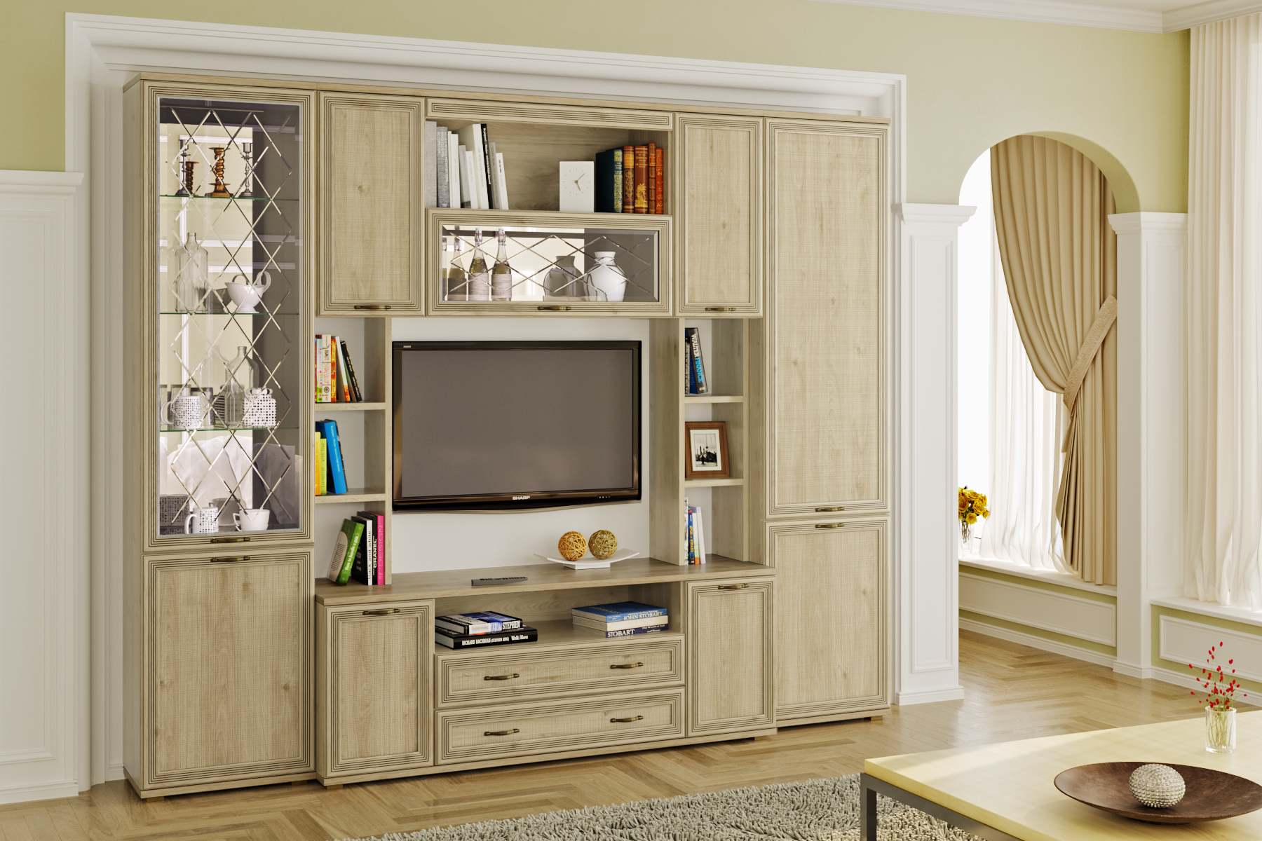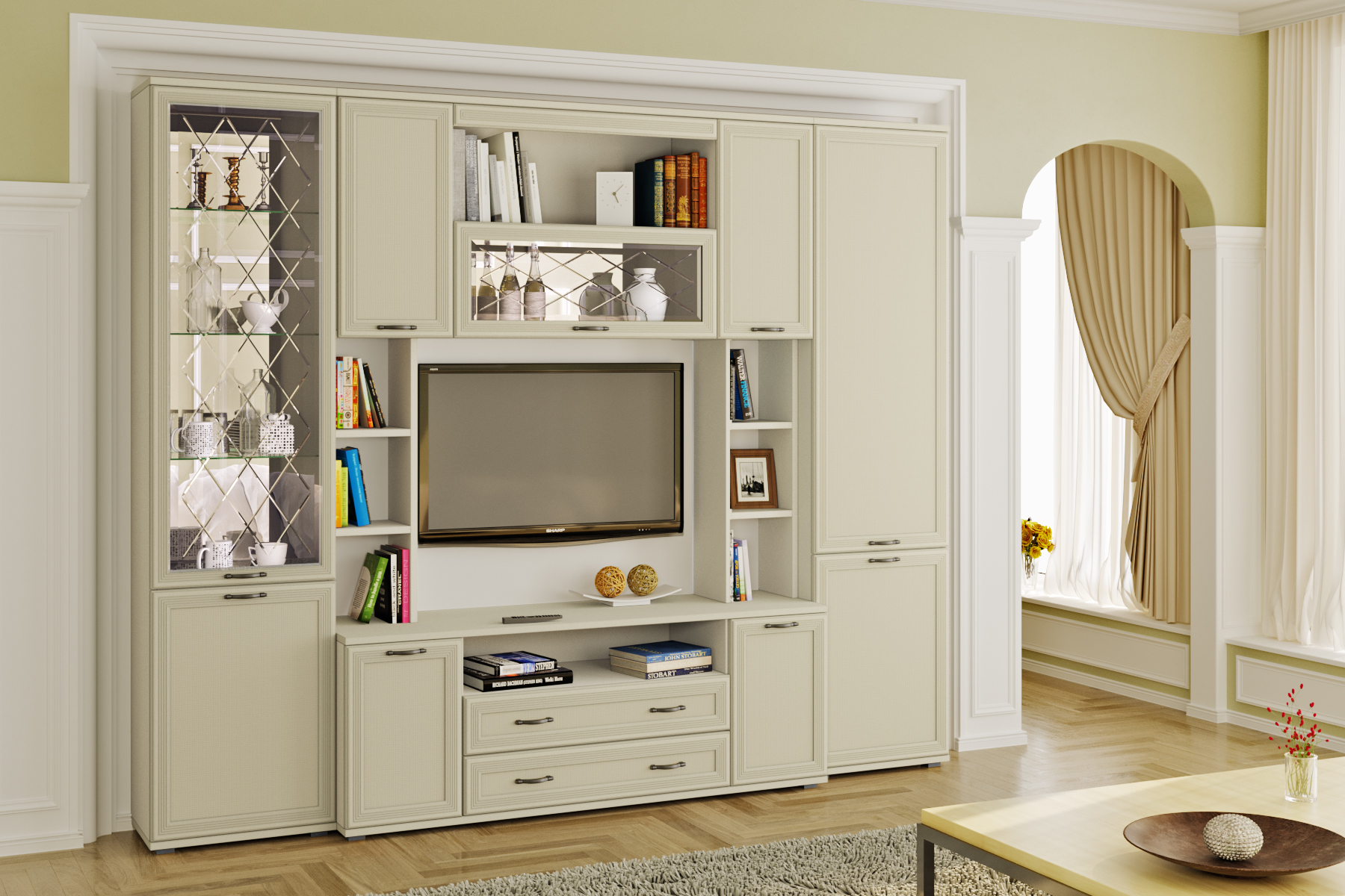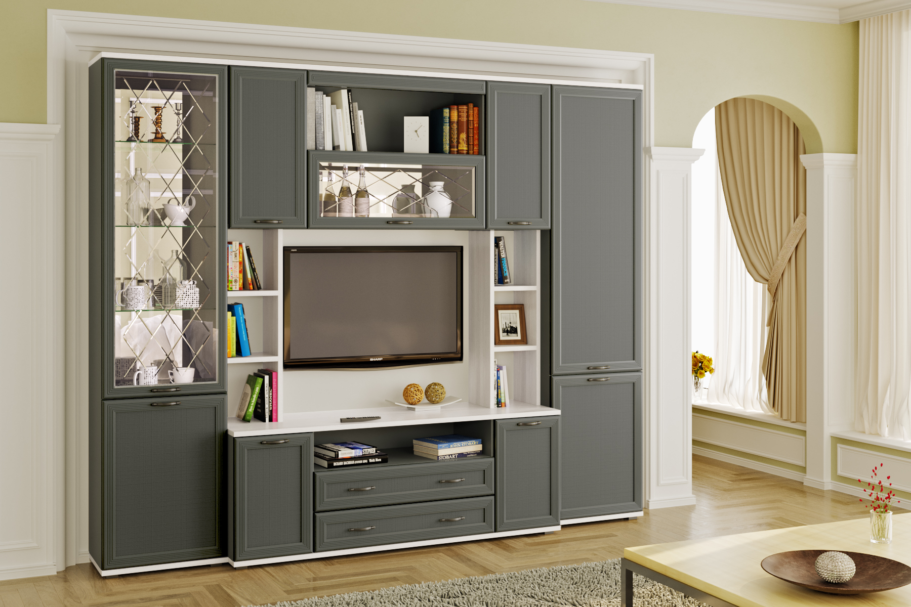 Цена включает в себя комплект зеркал (ЗР-1013 и ЗР-1025) за стеклянными фасадами