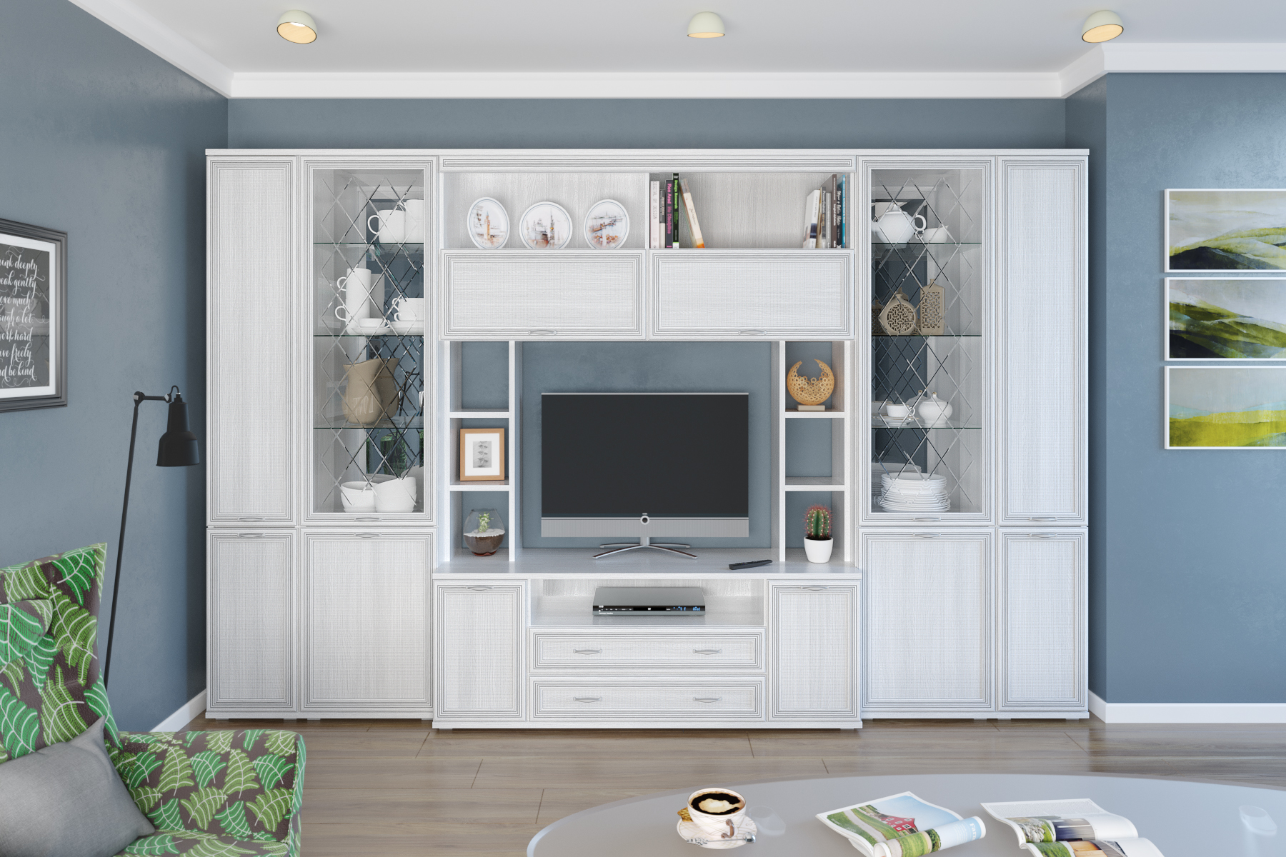 Цена включает в себя комплект зеркал за стеклянными фасадами
