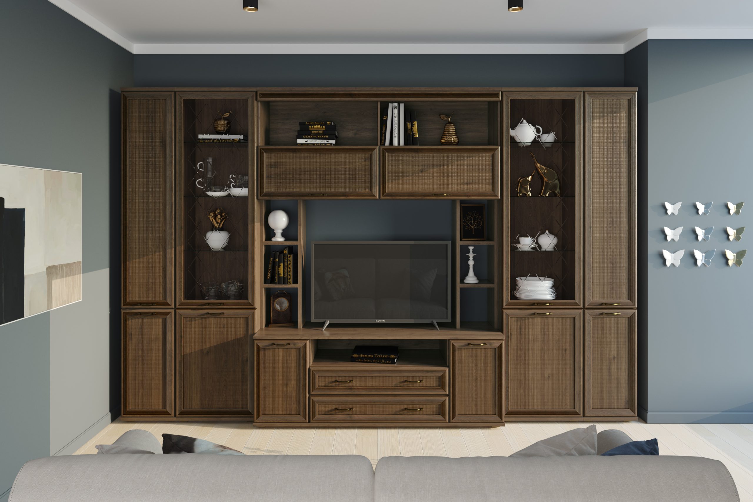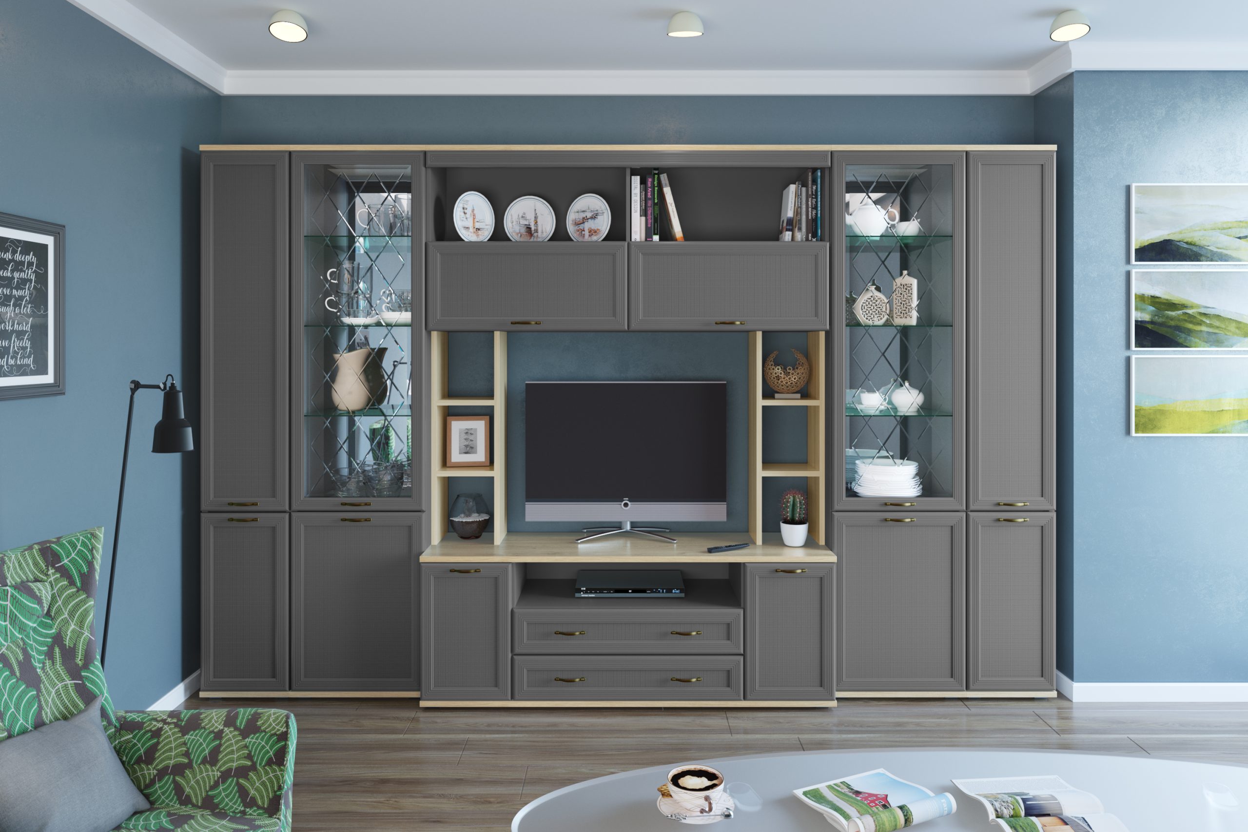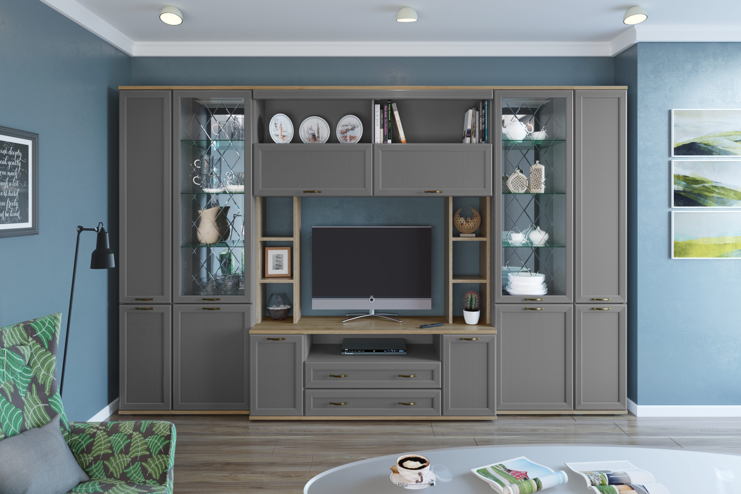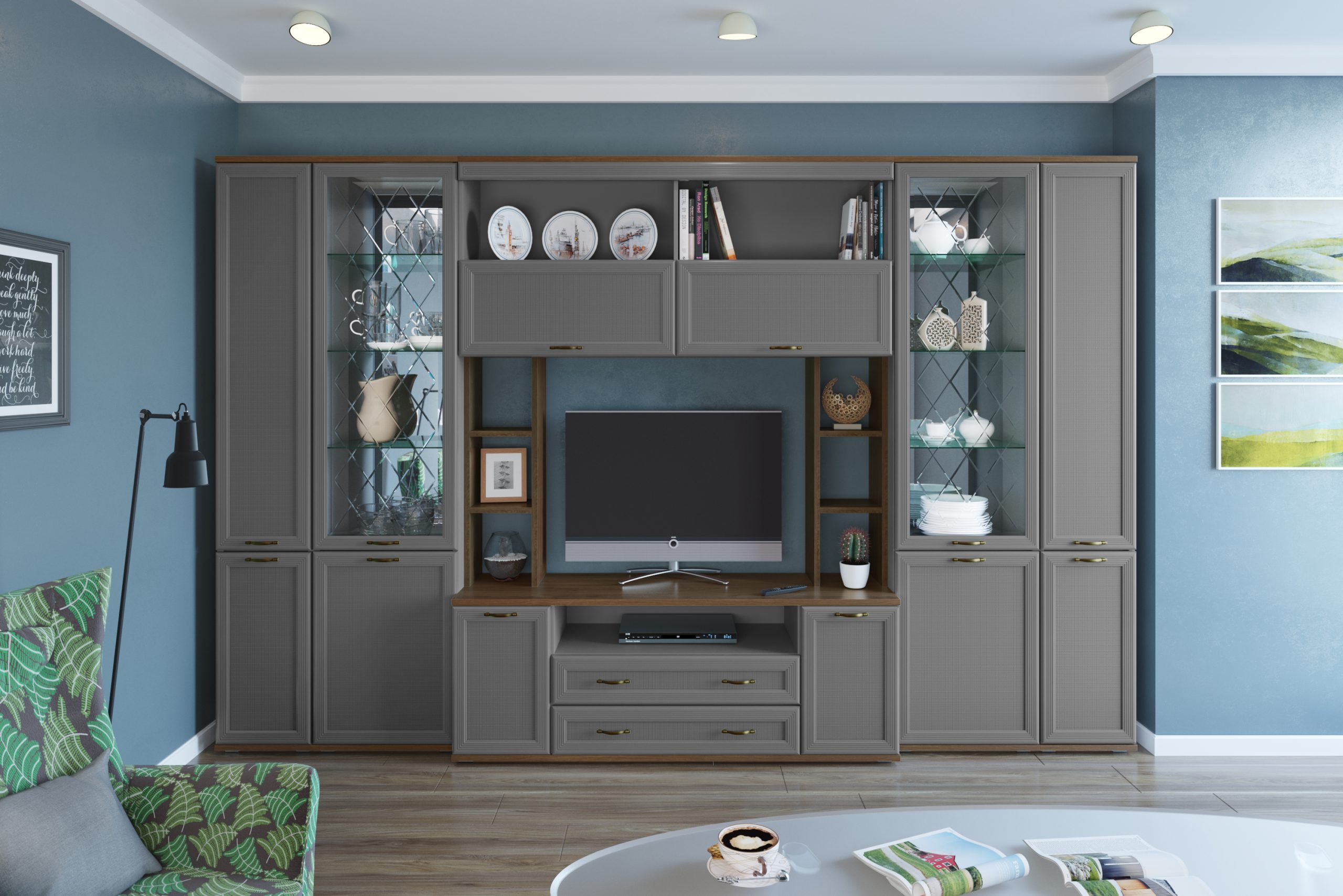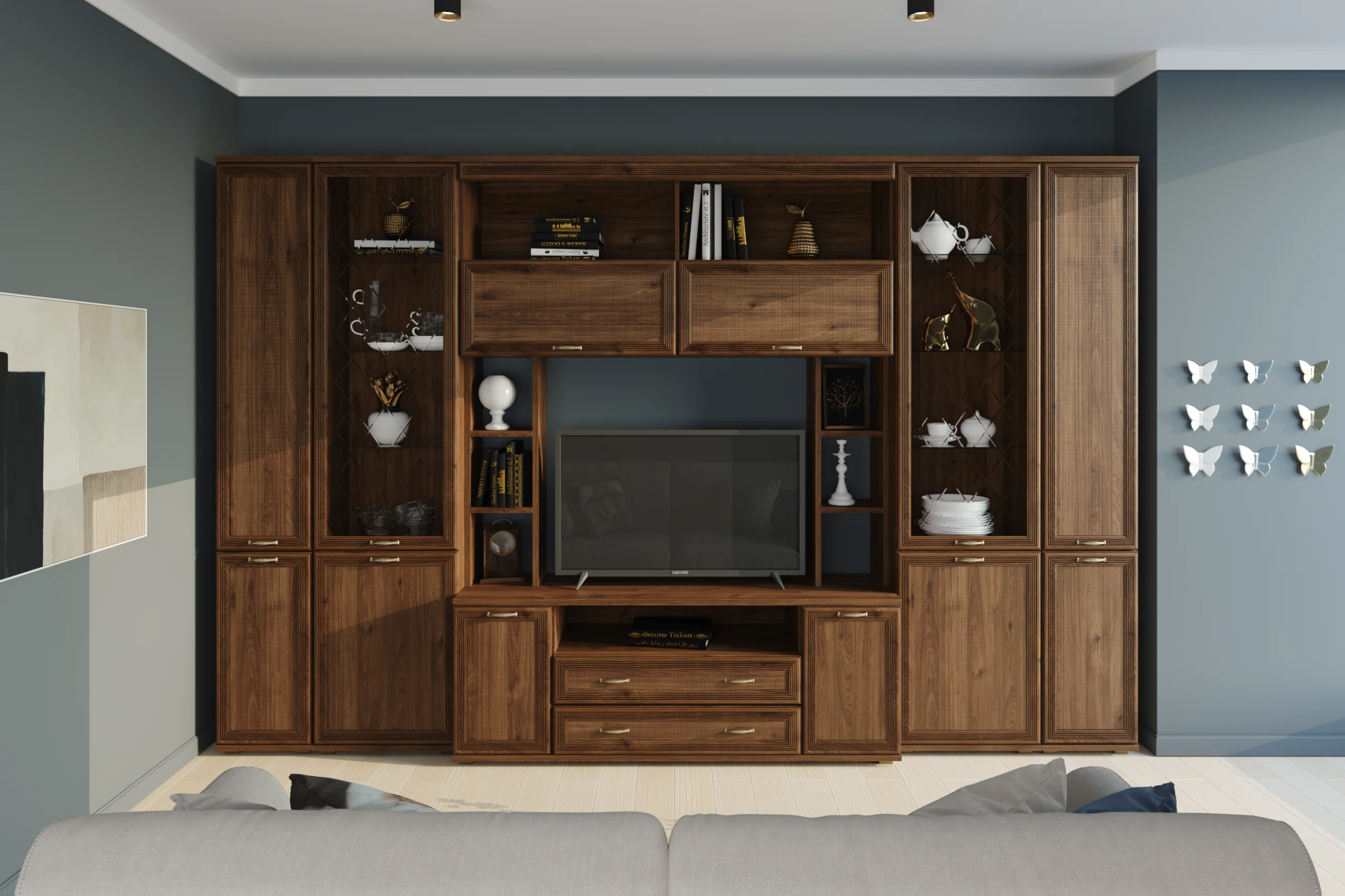 Цена включает в себя комплект зеркал за стеклянными фасадами