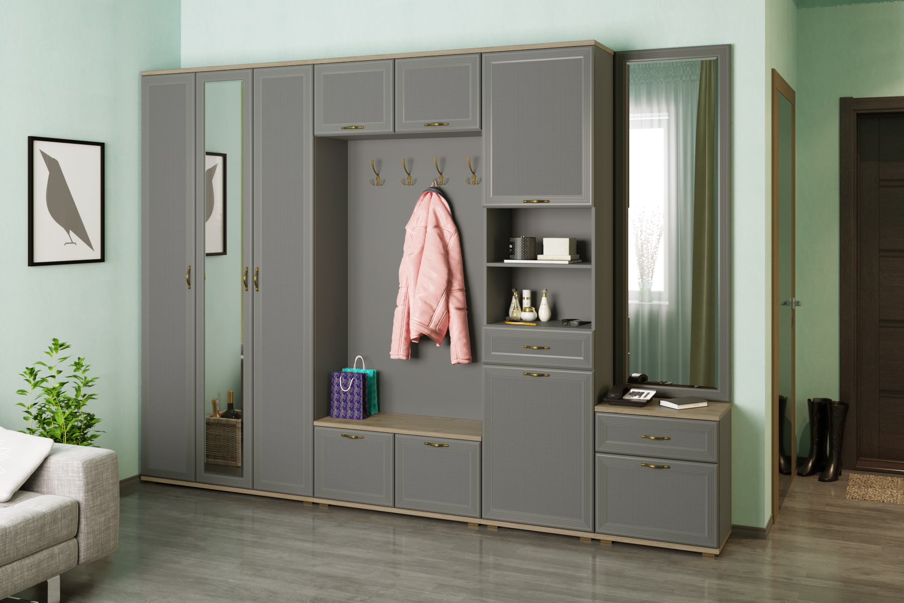 Габаритные размеры: ВхШхГ — 2224х3060х352 мм.