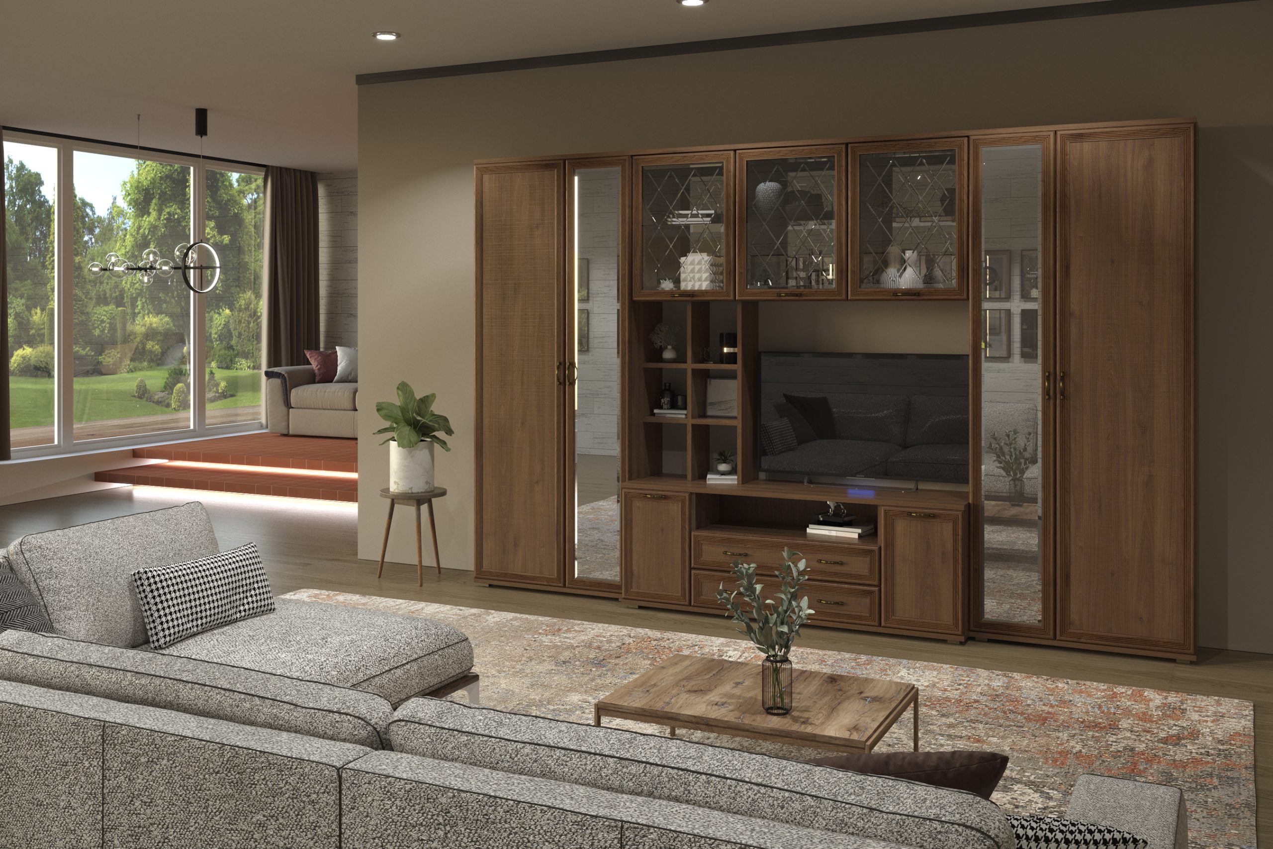 Цена включает в себя комплект зеркал за стеклянными фасадами