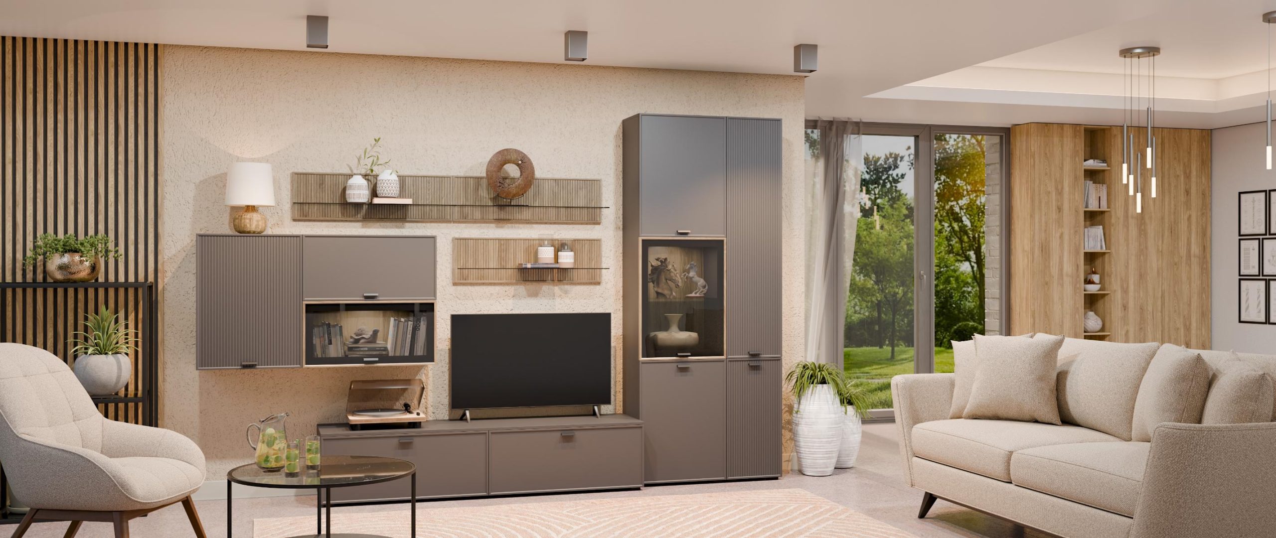 Возможность использования различных вариантов вставки — дополнительное преимущество при планировании гостиной.