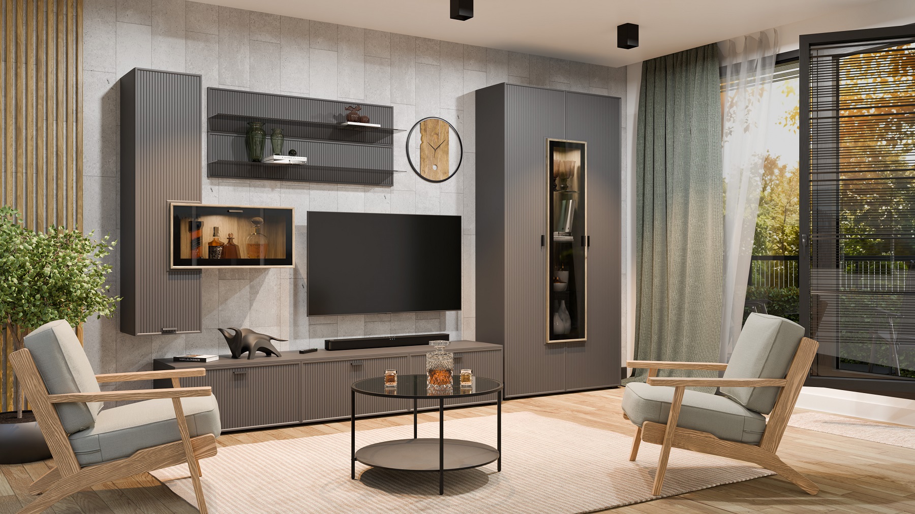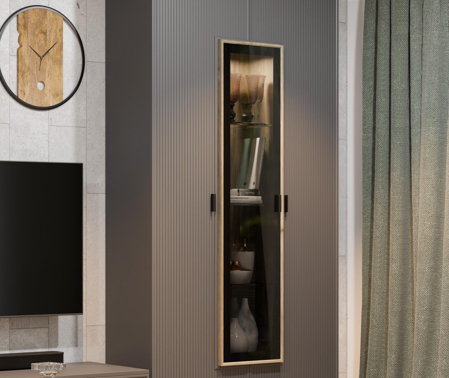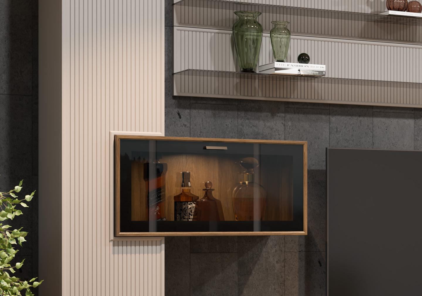 Применяемые материалы: корпус ЛДСП, фасад МДФ. Габаритные размеры: ВхШхГ — 2180х3510х448 мм. Гостиные СТЕЛЛА воплощают в себе актуальные тенденции мировой мебельной моды и позволяют создавать функциональные интерьеры в современном стиле, обеспечивающие высокий уровень комфорта. Сочетание нейтральных фоновых цветов, акцентных текстур дерева и тонированного стекла дают возможность открыть новые грани интерьера. Возможность использования различных вариантов вставки — дополнительное преимущество при планировании гостиной.